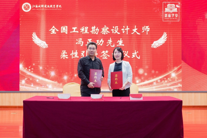 冯正功以《基于文脉的新空间》为题做专家报告,启发大家从空间、时间、人文等维度来关注建筑,通过研究分析并总结凝练城市中的环境、人文、历史、记忆等文脉特质基因,从而创作具有本土特色的当代建筑,实现传统文脉与现代技术的深度融合。刘大威会长以《高质量发展视角下的城乡建设与更新》为题做专家报告。刘会长从时代背景、工程质量、风貌与品质、绿色低碳、专题研究和建设策略六个方面详细且生动地为大家讲解了在新时代背景下城乡建设的高质量发展路径,为我校专业进一步转型升级提供了有力指导。会上,党委书记、校长张蔚与冯正功大师签订了柔性引进协议,张蔚为冯大师颁发特聘教授聘书。